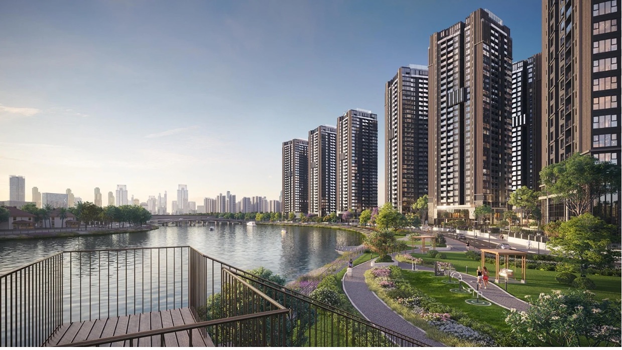Kiến trúc vuông vức với hai mặt giáp sông giúp từng căn hộ đón trọn ánh sáng và gió trời tự nhiên qua hệ cửa lùa thông minh. Thiết kế mở mang đến trải nghiệm sống gần gũi với thiên nhiên – chuẩn mực sống xanh mà giới thành thị đang tìm kiếm.