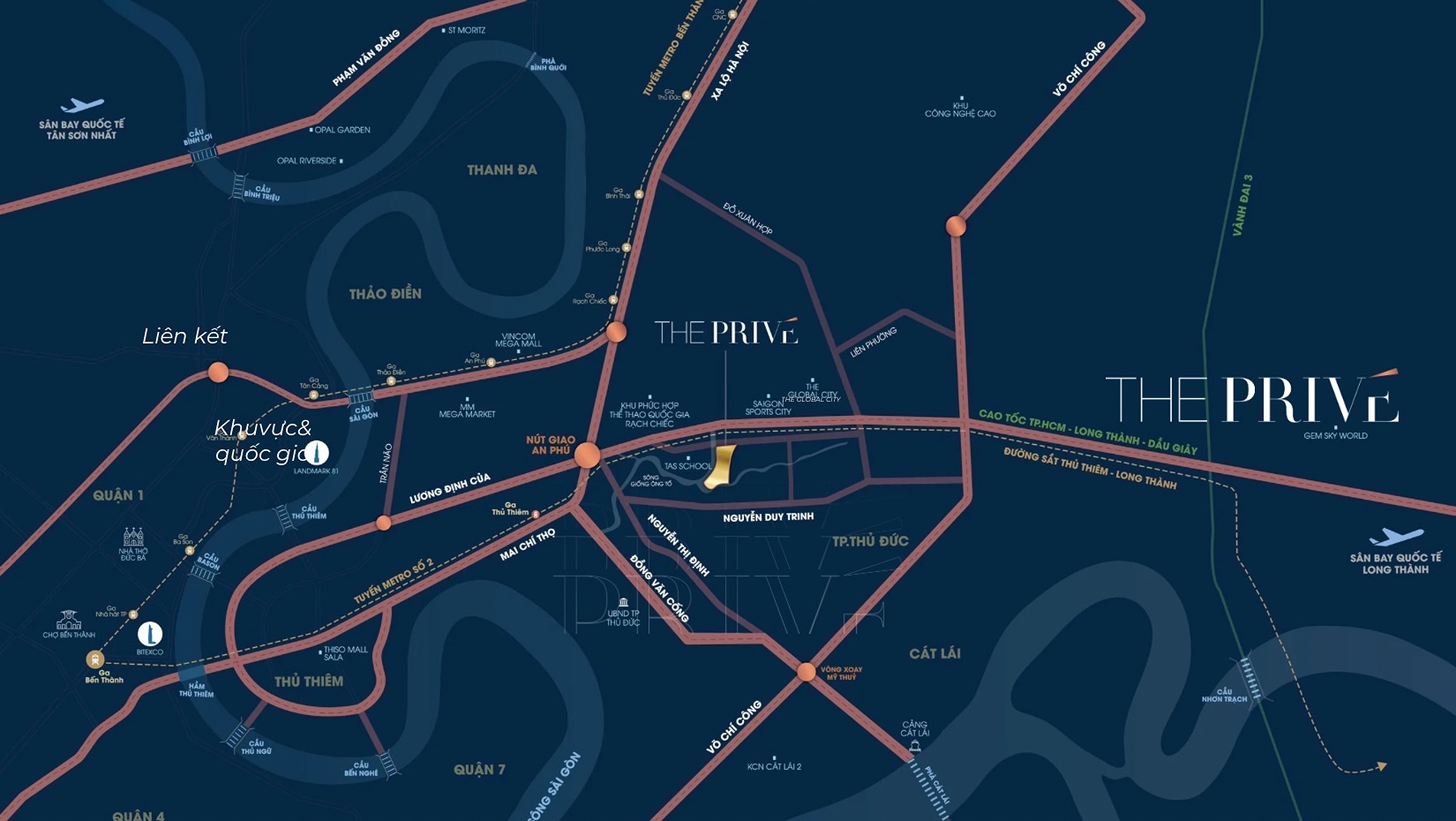 Sở hữu địa thế vàng “Nhất cận thị, nhị cận giang, tam cận lộ”, The Privé tọa lạc ngay tại khu đô thị Nam Rạch Chiếc, phường An Phú, TP. Thủ Đức (trước đây là Quận 2) — vị trí trung tâm khu Đông TP.HCM, nơi đang được đầu tư mạnh mẽ về hạ tầng và giao thông.