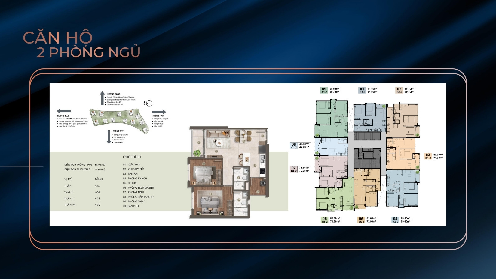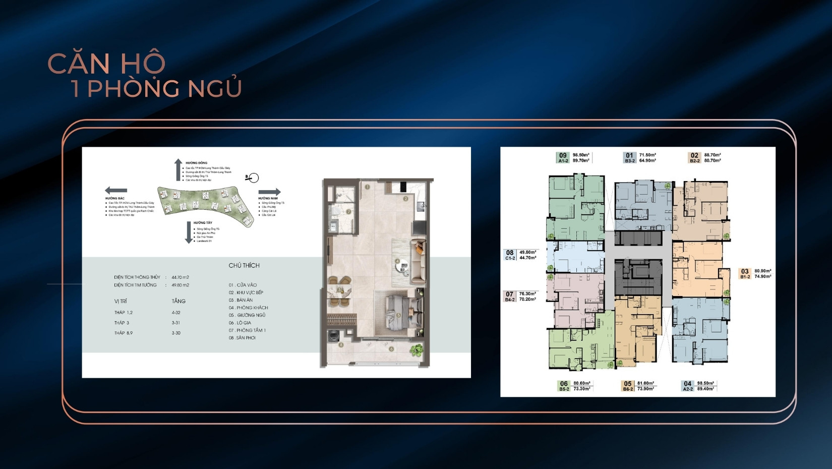 Thiết kế tối ưu hai mặt giáp sông giúp đón gió trời, ánh sáng tự nhiên. Từ studio tinh gọn đến penthouse và duplex villa, mỗi căn hộ là một tuyên ngôn cá nhân, được hoàn thiện bằng nội thất từ các thương hiệu danh tiếng như Kohler, Grohe, Duravit,…